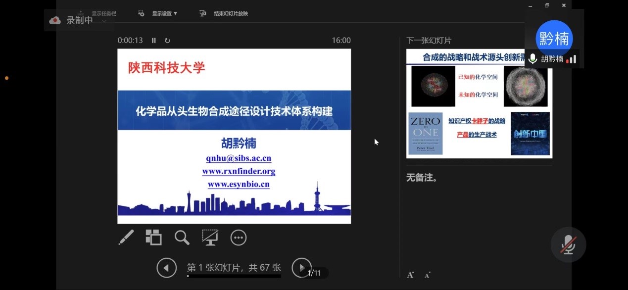報(bào)告最后,杜一平教授就師生們對(duì)于生物毒素?zé)晒夥治?、樣品前處理技術(shù)、以及LED燈激發(fā)的熒光分析儀器的結(jié)構(gòu)和光路構(gòu)建等問(wèn)題進(jìn)行了詳細(xì)的討論和解答。胡黔楠研究員就如何通過(guò)所建立的數(shù)據(jù)分析工具篩選生物合成途徑、合成可行性、數(shù)據(jù)庫(kù)使用方法等問(wèn)題與師生們進(jìn)行了交流討論。馮國(guó)強(qiáng)教授與師生交流討論了腫瘤小鼠建模、熒光分子探針設(shè)計(jì)、熒光基團(tuán)調(diào)控等問(wèn)題。