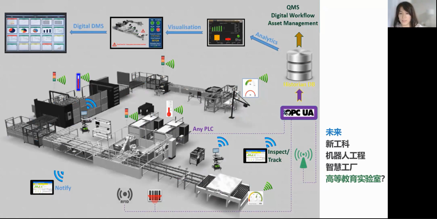 賈敏圍繞數(shù)字孿生、智造創(chuàng)新和桌面智慧工廠等相關(guān)技術(shù),針對工業(yè)4.0時代的未來智慧工廠形態(tài)進(jìn)行了詳細(xì)的介紹。她強(qiáng)調(diào),未來智慧工廠將會是實體物理環(huán)境和虛擬網(wǎng)絡(luò)世界的深度融合,也是一個“數(shù)字孿生”的人機(jī)交互系統(tǒng),更將是新工科人才的主要聚集地。