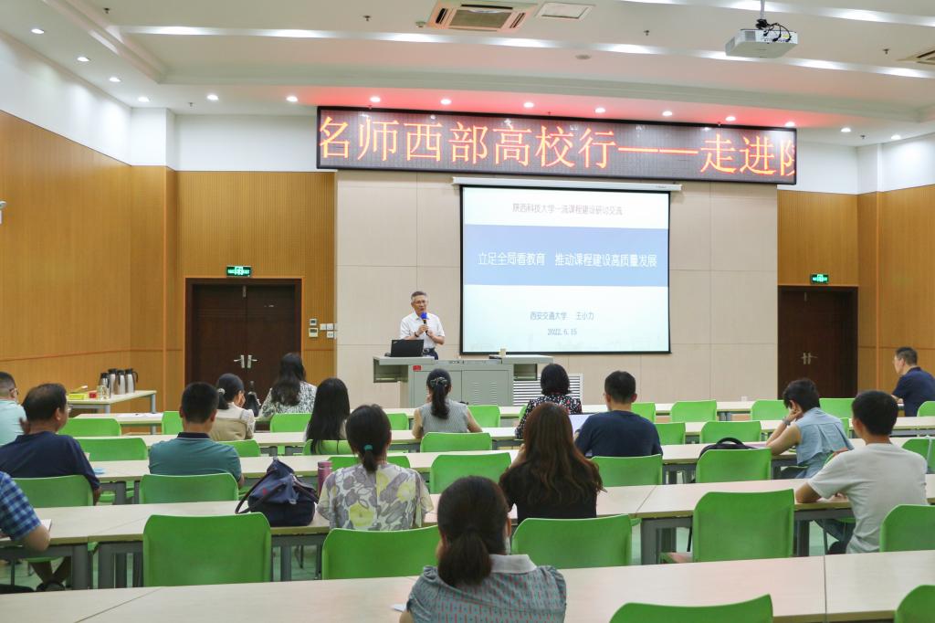 6月15日下午,由西北地區(qū)高等學校教師教學發(fā)展中心聯(lián)盟主辦,我校教師發(fā)展中心及教務(wù)處承辦的“名師西部高校行——走進陜西科技大學”報告會在我校舉行。特邀國家級教學名師、西安交通大學王小力教授做了題為《立足全局看教育,推動課程建設(shè)高質(zhì)量發(fā)展》的主題報告。教師發(fā)展中心常務(wù)副主任徐永建主持了本次活動,西北教師發(fā)展聯(lián)盟執(zhí)行秘書長吉康敏及我校教務(wù)處負責人參加活動。