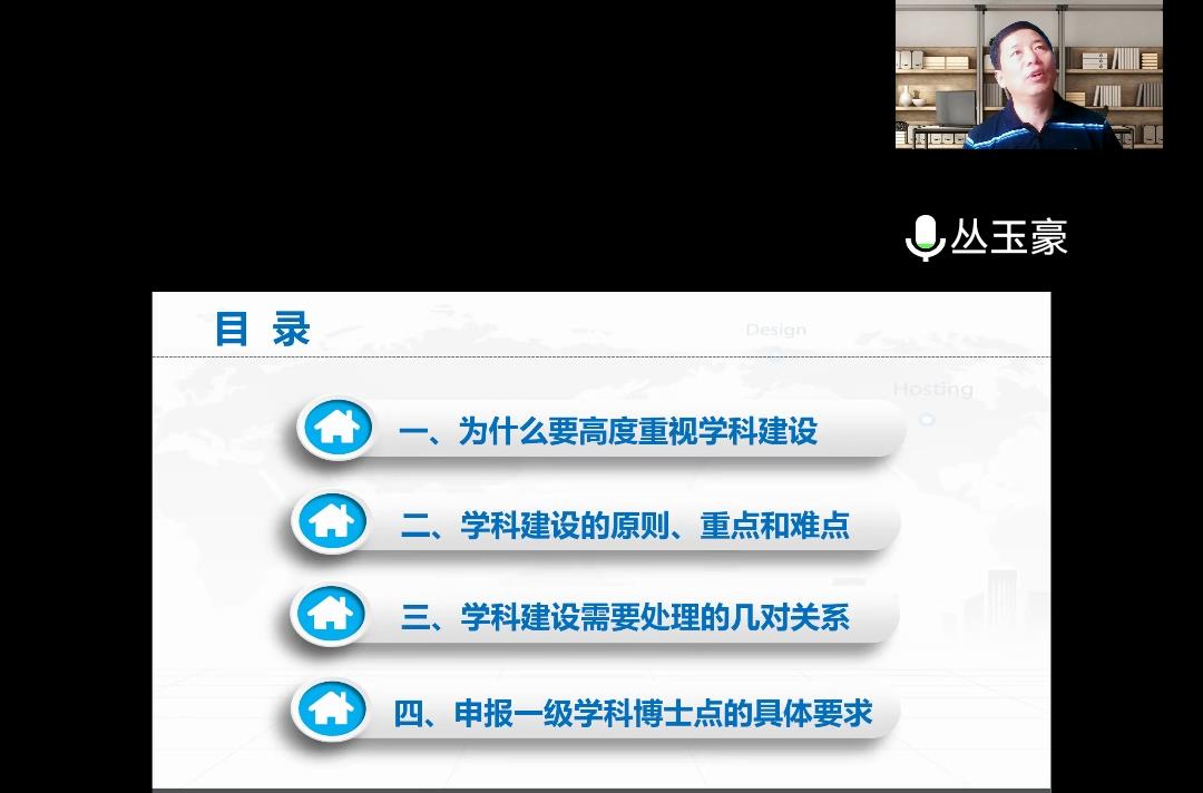 報告會上,叢玉豪教授從為什么要高度重視學(xué)科建設(shè),學(xué)科建設(shè)的原則、重點和難點,學(xué)科建設(shè)需要處理的幾對關(guān)系,申報一級學(xué)科博士點的具體要求等四個方面詳細展開講解。報告中介紹學(xué)科建設(shè)對于大學(xué)建設(shè)和發(fā)展的重要意義,世界一流學(xué)科與世界一流大學(xué),學(xué)科發(fā)展新趨勢帶來的機遇與挑戰(zhàn)。他特別指出,學(xué)科建設(shè)的重點、難點為凝練學(xué)科方向、匯聚學(xué)科隊伍、提高學(xué)科育人水平、構(gòu)筑學(xué)科平臺、爭取科研項目、加強學(xué)科文化建設(shè)。
