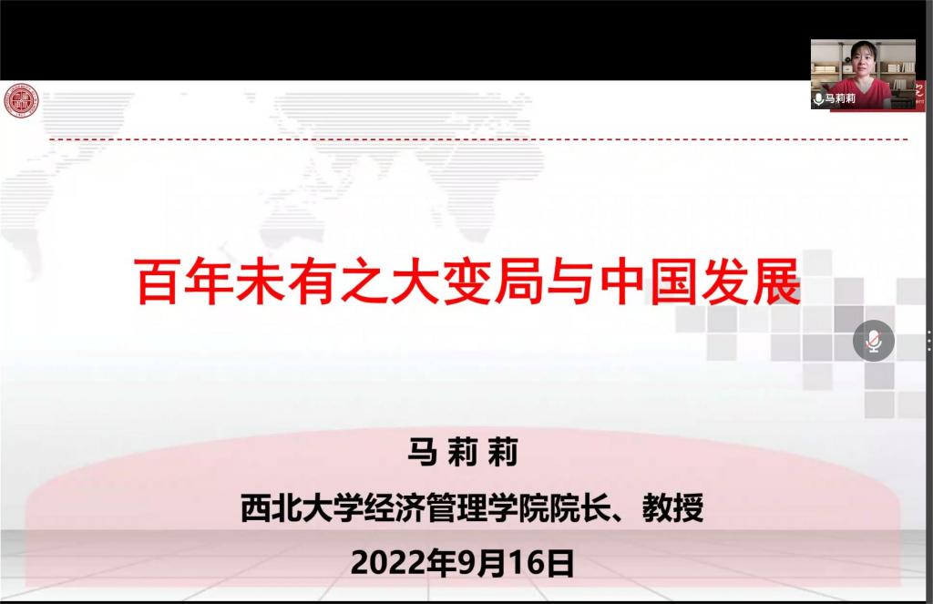 9月16日,應(yīng)我??萍继帯⒔?jīng)濟(jì)與管理學(xué)院邀請(qǐng),西北大學(xué)經(jīng)濟(jì)管理學(xué)院院長(zhǎng)馬莉莉教授做客我?!扒把乜茖W(xué)報(bào)告”,為我校師生帶來(lái)主題為“百年未有之大變局與中國(guó)發(fā)展”的線上報(bào)告。報(bào)告由經(jīng)管學(xué)院副院長(zhǎng)薛儉教授主持,經(jīng)管學(xué)院教師、研究生聆聽了此次報(bào)告。