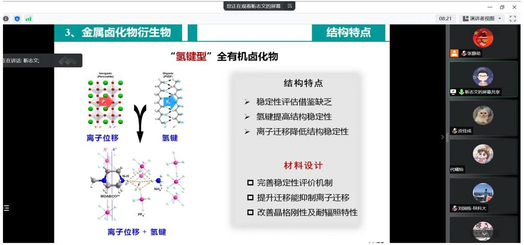 10月27日,受我校輕工科學(xué)與工程學(xué)院(柔性電子學(xué)院)、科技處與前沿院邀請,蘭州大學(xué)靳志文教授做客我?!扒把乜茖W(xué)報告”,為我校師生帶來題目為“金屬鹵化物X射線探測器”的線上學(xué)術(shù)報告。報告由輕工學(xué)院副院長劉國棟主持,相關(guān)教師和研究生參加了此次報告。