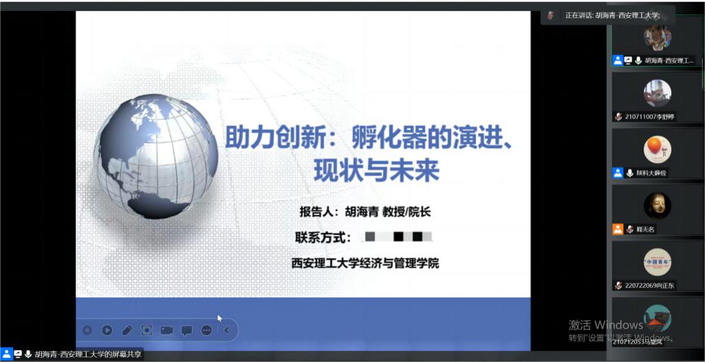 11月8日,受科技處、經(jīng)濟與管理學院邀請,西安理工大學經(jīng)濟與管理學院院長胡海青教授做客我校“前沿科學報告”,為我校師生帶來主題為“助力創(chuàng)新:孵化器的演進、現(xiàn)狀與未來”的線上報告。報告由經(jīng)管學院副院長薛儉教授主持,經(jīng)管學院教師、研究生聆聽了此次報告。