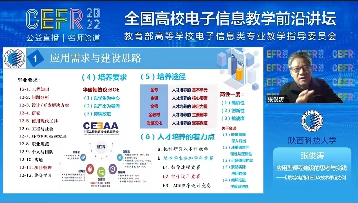 11月14日,受教育部高等學(xué)校電子信息專業(yè)教學(xué)指導(dǎo)委員會(huì)邀請,我校電子信息與人工智能學(xué)院張俊濤教授在全國高校電子信息教學(xué)前沿講壇上做了題為“應(yīng)用型課程建設(shè)的思考實(shí)踐”的公益直播報(bào)告。