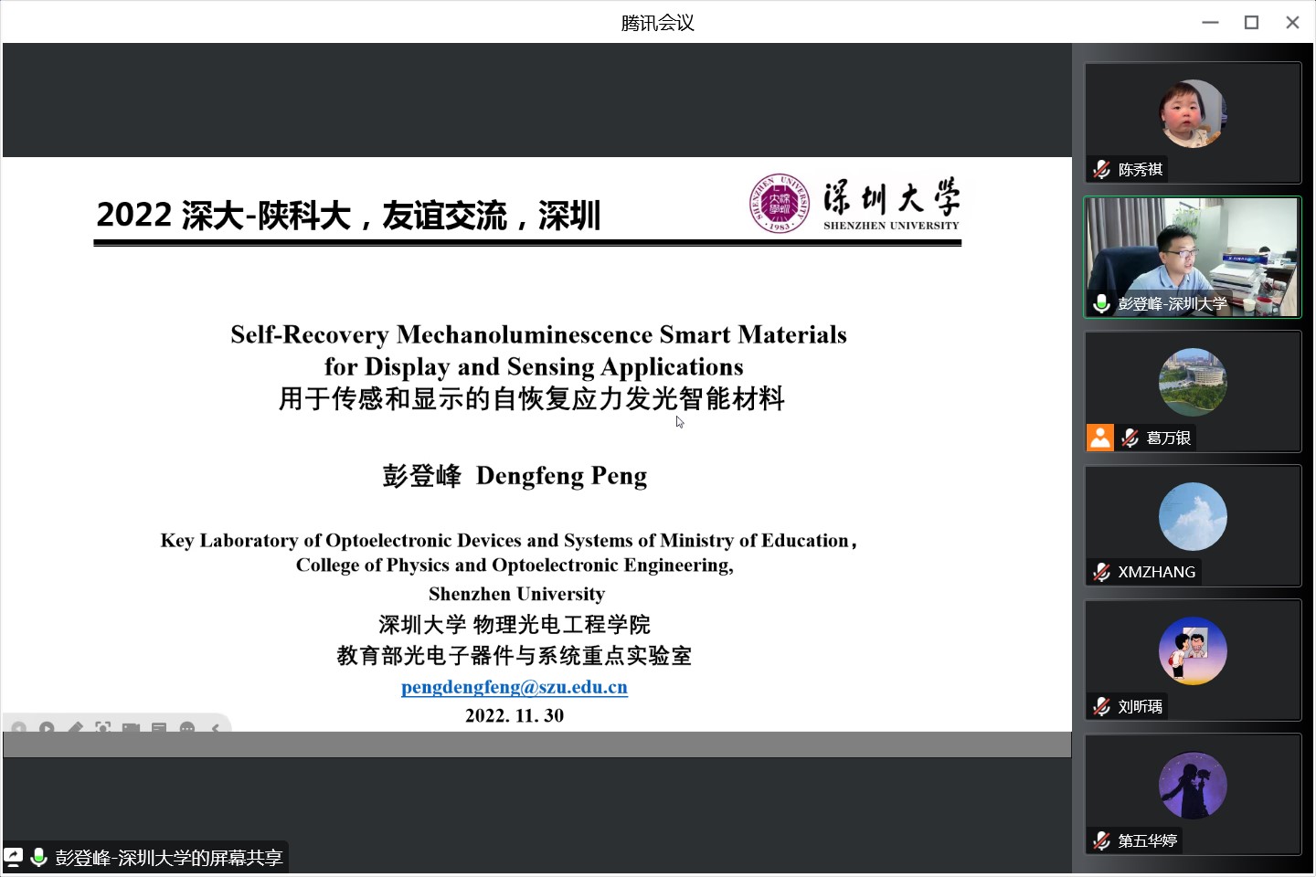 11月30日,應(yīng)我校材料科學(xué)與工程學(xué)院、科技處及前沿院邀請(qǐng),深圳大學(xué)彭登峰教授做客我校“前沿科學(xué)報(bào)告”,為我校師生帶來(lái)主題為“用于傳感和顯示的自恢復(fù)應(yīng)力發(fā)光智能材料”的學(xué)術(shù)報(bào)告。報(bào)告會(huì)由材料學(xué)院副院長(zhǎng)王卓教授主持,材料學(xué)院相關(guān)專業(yè)教師及研究生參加了此次報(bào)告會(huì)。