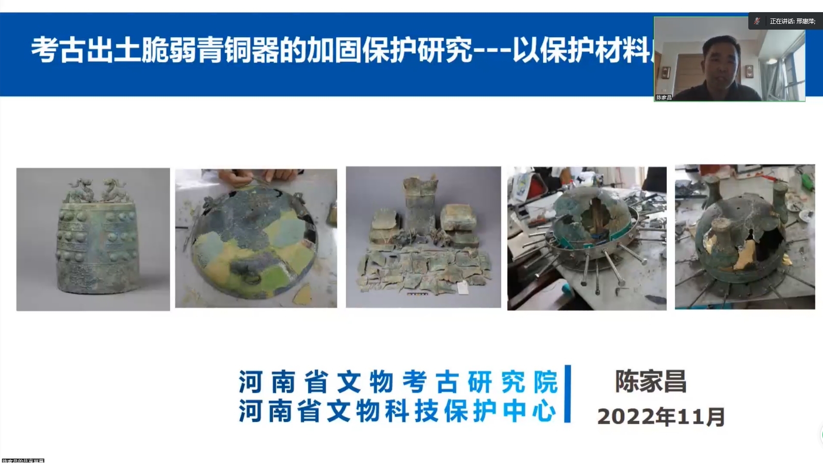 陳家昌研究員詳細(xì)講解了脆弱青銅器的保存現(xiàn)狀、青銅器的腐蝕機(jī)理及保護(hù)研究現(xiàn)狀、保護(hù)材料研究現(xiàn)狀及存在的問(wèn)題,最后對(duì)保護(hù)新材料應(yīng)用案例進(jìn)行了探討,科學(xué)地指出新材料與文物保護(hù)的結(jié)合點(diǎn),為我校材料研究新成果在文物保護(hù)領(lǐng)域的實(shí)踐應(yīng)用指明了方向。