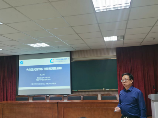 3月16日下午,應(yīng)我校文理學(xué)院、科技處及前沿院邀請,西安石油大學(xué)郭文閣教授做客我校“前沿科學(xué)報(bào)告”,作了題為“大型激光陀螺儀及精密測量應(yīng)用”的學(xué)術(shù)報(bào)告。報(bào)告會由文理學(xué)院院長劉建科教授主持,文理學(xué)院物理系師生及我校相關(guān)專業(yè)師生近百人參加了此次報(bào)告會。