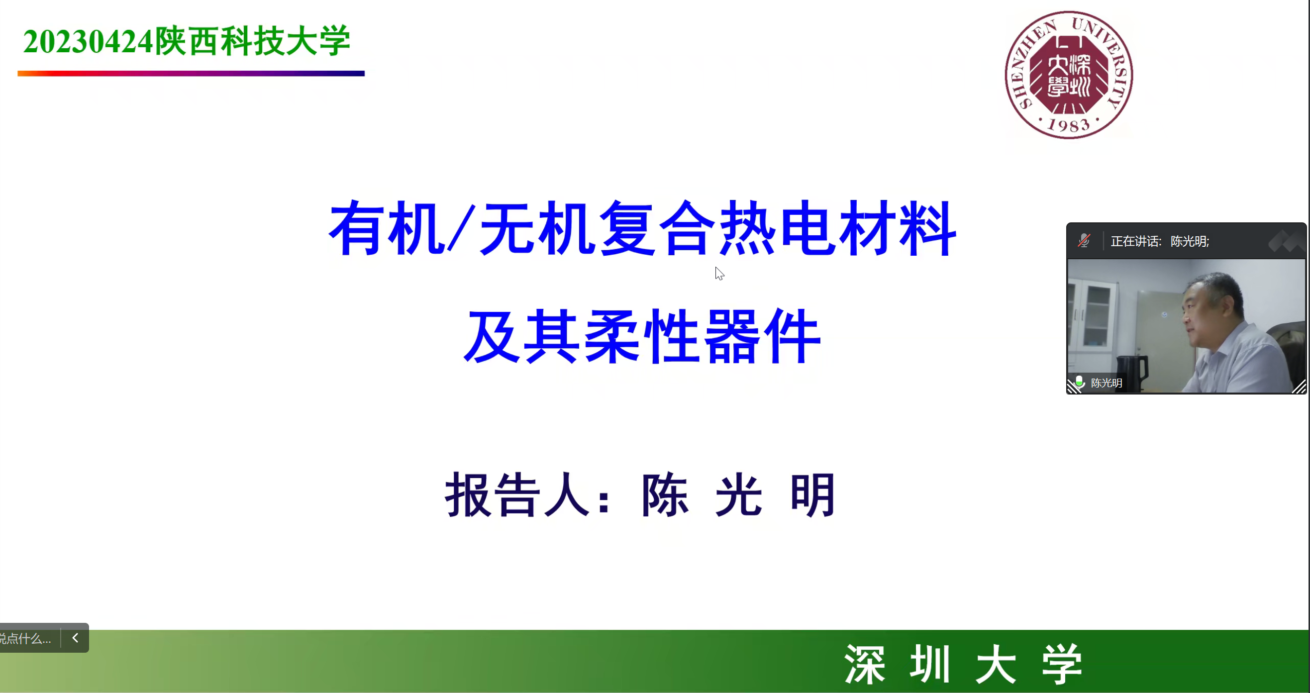 應(yīng)我校材料科學(xué)與工程學(xué)院(文物保護(hù)科學(xué)與技術(shù)學(xué)院)、科技處及前沿院邀請(qǐng),西安交通大學(xué)王洪教授、深圳大學(xué)陳光明教授分別于4月19日、4月24日做客我?!扒把乜茖W(xué)報(bào)告”,分別為我校師生帶來(lái)主題為“面向低溫余熱回收的高輸出功率密度的‘一體式’有機(jī)熱電器件”“有機(jī)/無(wú)機(jī)復(fù)合熱電材料與器件”學(xué)術(shù)報(bào)告,報(bào)告會(huì)由材料學(xué)院楊艷玲教授主持,材料學(xué)院相關(guān)專業(yè)教師及研究生參加了報(bào)告會(huì)。