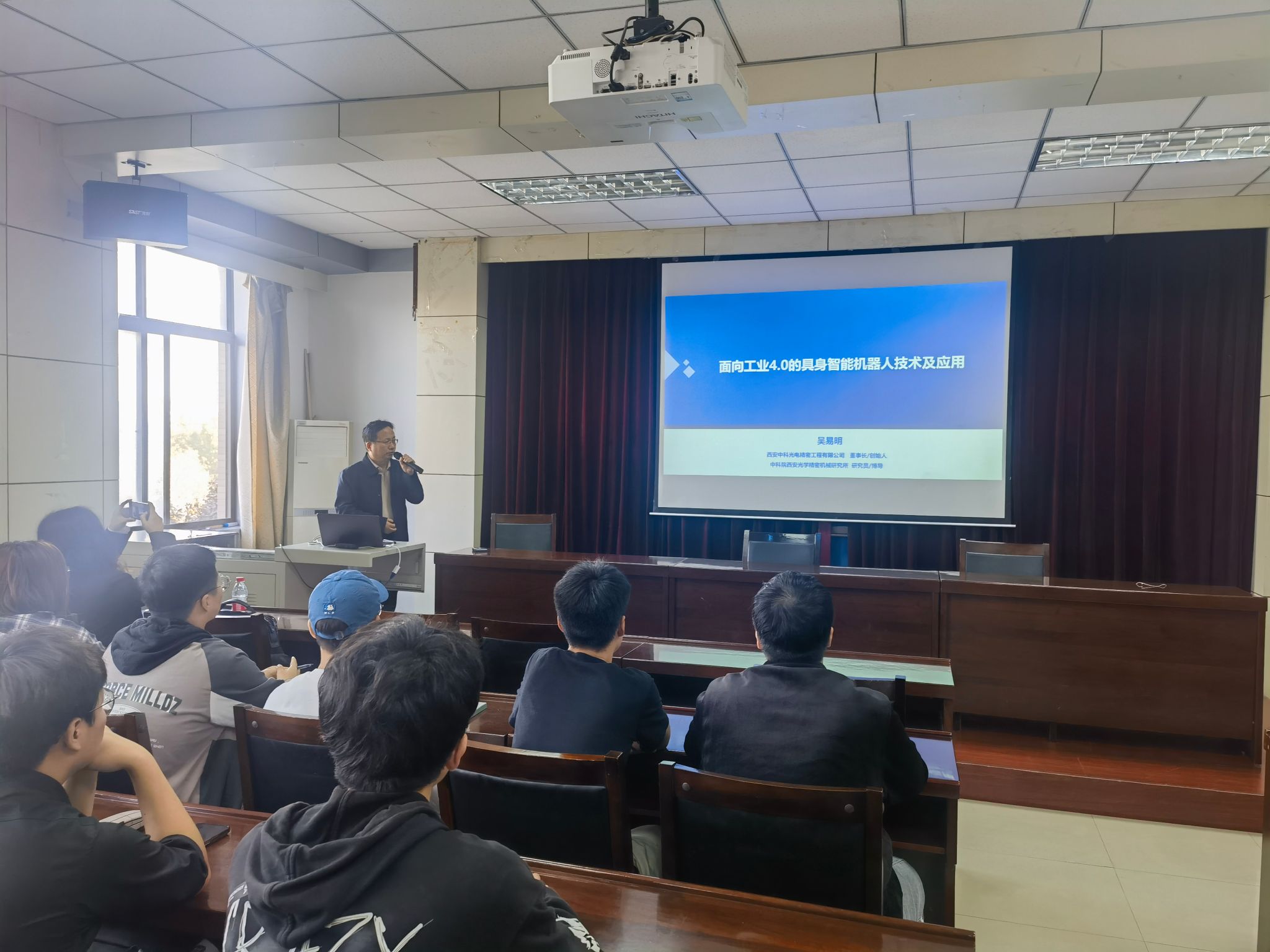 10月30日,受機電工程學院(智能制造與機器人工程學院)邀請,中科院西安光學精密機械研究所吳易明研究員做客我校“未央導師論壇”,做了題為“面向工業(yè)4.0的具身智能機器人技術及應用”的學術報告,機電學院機器人工程專業(yè)的師生參加了報告會,機器人工程教研室主任劉慶立主持報告會。