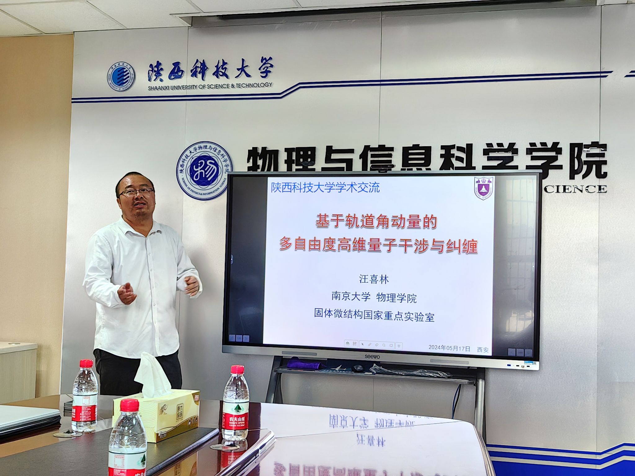 5月17日下午,應(yīng)物理與信息科學學院邀請,南京大學汪喜林教授做客我?!扒把乜茖W報告”,報告題目為“基于軌道角動量的多自由度高維量子干涉與糾纏”,報告在理科樓441會議室舉行。報告會由物理學院院長劉建科主持,學院相關(guān)專業(yè)教師、研究生參加了此次報告會。