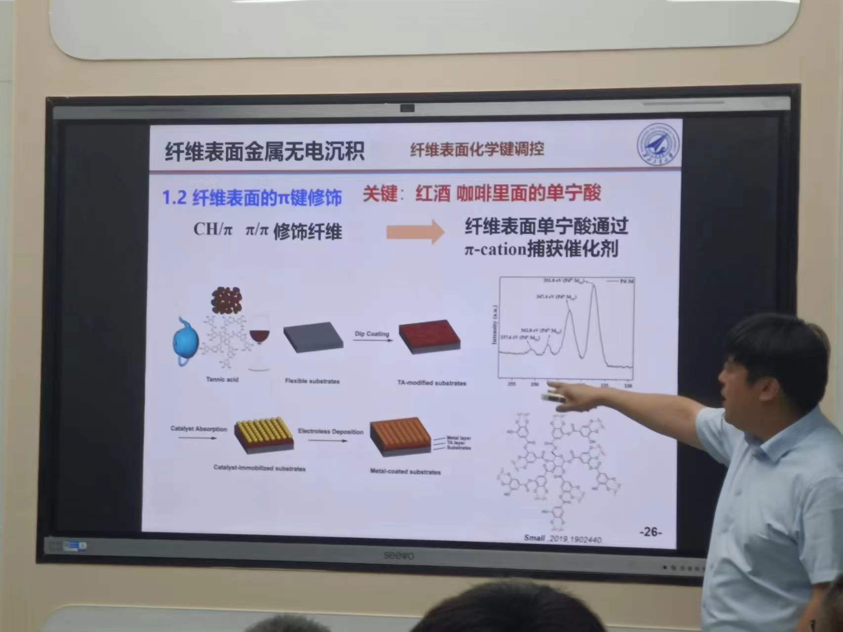 近日,應(yīng)我??萍继?、材料科學(xué)與工程學(xué)院(文物保護(hù)科學(xué)與技術(shù)學(xué)院)及前沿院邀請(qǐng),西北工業(yè)大學(xué)劉旭慶教授做客我?!扒把乜茖W(xué)報(bào)告”,作了題為“纖維表面分子工程和功能性纖維”的學(xué)術(shù)報(bào)告。報(bào)告會(huì)由材料學(xué)院宋浩杰教授主持,學(xué)院相關(guān)專業(yè)師生參加了此次報(bào)告會(huì)。