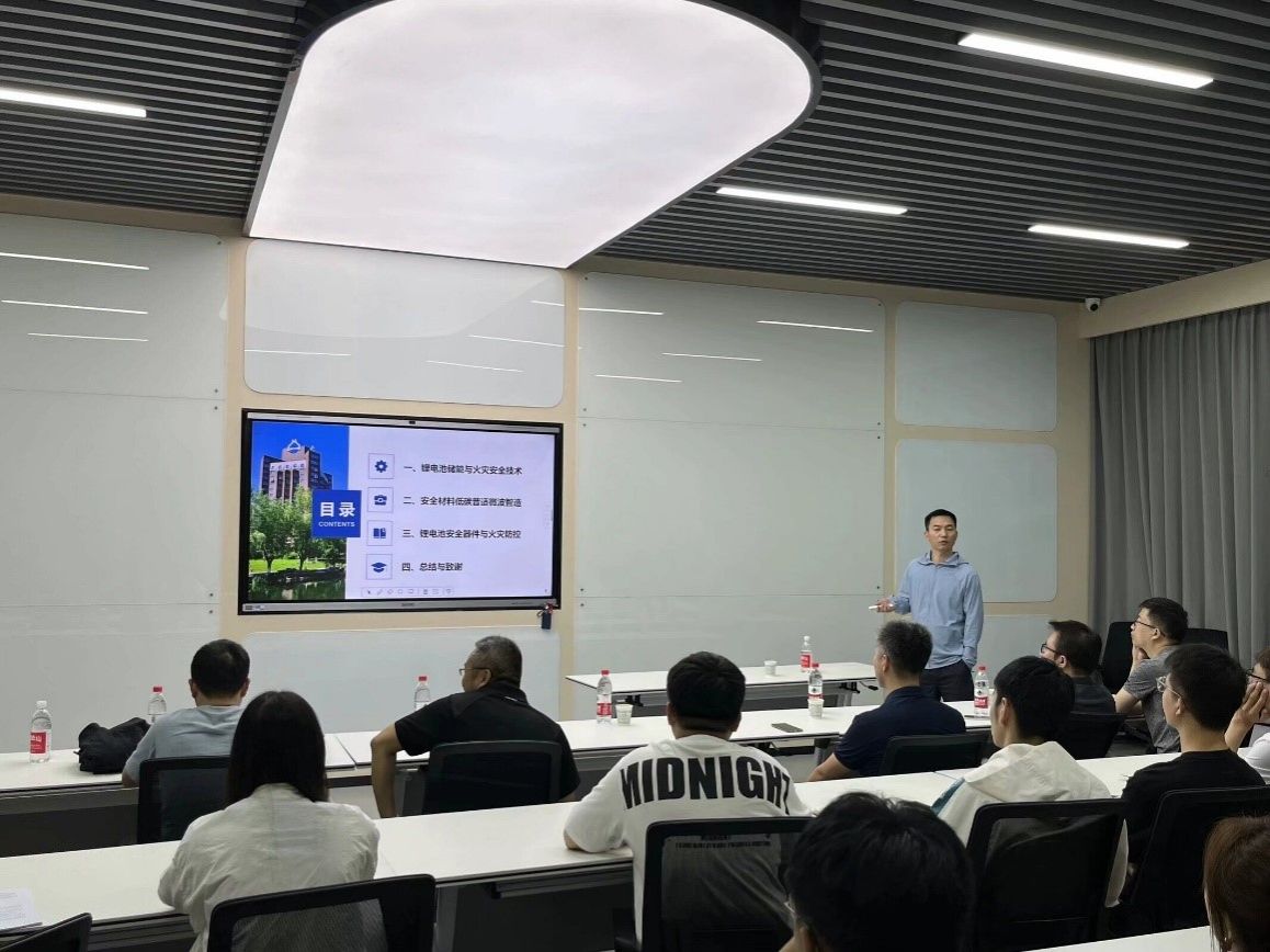在報告中,朱紀(jì)欣教授結(jié)合電動汽車、大型儲能、移動電子設(shè)備等重大應(yīng)用與安全需求,生動有趣的介紹了鋰電池服役過程的材料失效與熱聚集,誘發(fā)性能衰減與熱失控等問題,同時,朱教授圍繞“鋰電池全壽命周期安全”,從鋰電池的安全復(fù)合材料制造、材料服役機(jī)制,熱失控監(jiān)測與防控技術(shù)等方面,詳細(xì)闡述了鋰電池全壽命周期的材料安全、工況安全和火災(zāi)安全設(shè)計理念。報告內(nèi)容豐富,既有理論高度,又結(jié)合了實踐經(jīng)驗,使在場師生受益匪淺。