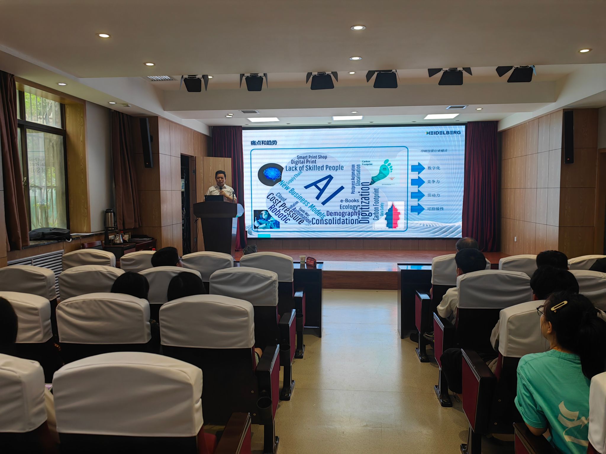報(bào)告會(huì)上,王勇首先介紹了印刷包裝行業(yè)的發(fā)展趨勢(shì),分析了當(dāng)前印刷包裝產(chǎn)業(yè)用到的新技術(shù)新產(chǎn)品,并介紹了其內(nèi)涵、特征以及開發(fā)的思路。隨后,他以速霸2020時(shí)代膠印機(jī)為例,介紹了人工智能在企業(yè)發(fā)展中的巨大潛力,將智能化等新技術(shù)引入大規(guī)模生產(chǎn)線,有效提高了產(chǎn)業(yè)綜合效率,降低了產(chǎn)品成本,通過智能化和自動(dòng)化的引進(jìn),給用戶提供了現(xiàn)代化且具有吸引力的工作環(huán)境,以最大優(yōu)勢(shì)激勵(lì)技術(shù)人才。最后,他還詳細(xì)介紹了智能化工廠管理在印后加工工藝上的應(yīng)用,并鼓勵(lì)學(xué)生善于思考,勇于實(shí)踐,培養(yǎng)創(chuàng)新思維,更好地適應(yīng)和應(yīng)對(duì)未來的挑戰(zhàn)與機(jī)遇。