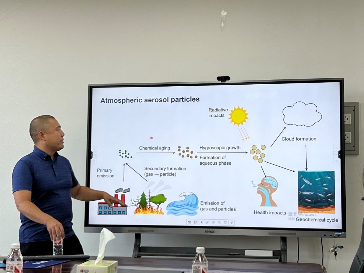 7月30日,應(yīng)我校科技處、前沿院、環(huán)境科學(xué)與工程學(xué)院(碳中和科學(xué)與技術(shù)學(xué)院)邀請(qǐng),北京大學(xué)Mikinori Kuwata教授做客我?!扒把乜茖W(xué)報(bào)告”,并作了題為“Thermodynamic properties of aerosol particles and its implications for chemical reactivity: Laboratory study”的學(xué)術(shù)報(bào)告,報(bào)告由環(huán)境學(xué)院陳慶彩教授主持,相關(guān)教師及研究生參加了此次報(bào)告會(huì)。