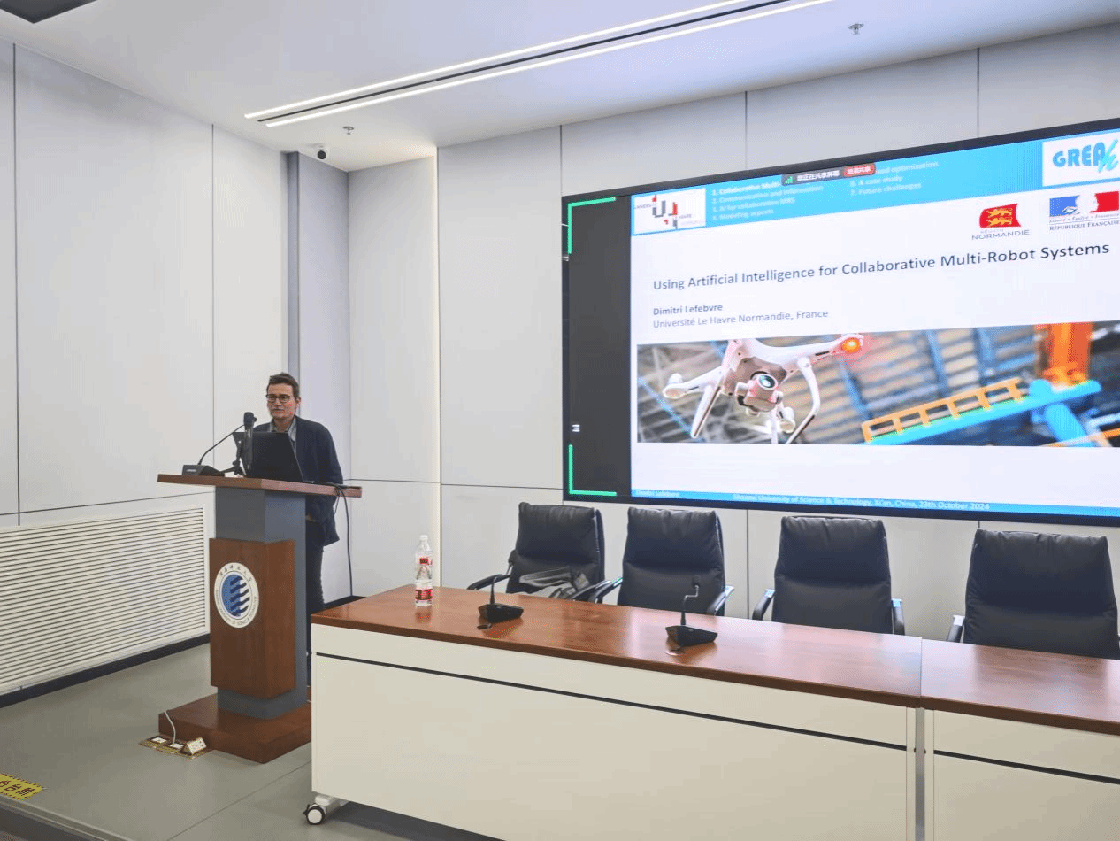 10月23日下午,應(yīng)我校電氣與控制工程學(xué)院邀請,法國勒阿弗爾大學(xué)Dimitri Lefebvre(迪米特·列斐爾)教授作了題為“Using Artificial Intelligence for Collaborative Multi-Robot Systems(人工智能在協(xié)作式多機(jī)器人系統(tǒng)中的應(yīng)用)”的學(xué)術(shù)報(bào)告。報(bào)告會由研究生院主辦,電氣與控制工程學(xué)院承辦,電控學(xué)院研究生導(dǎo)師及研究生參加了此次報(bào)告會,會議由電控學(xué)院副院長何舟主持。