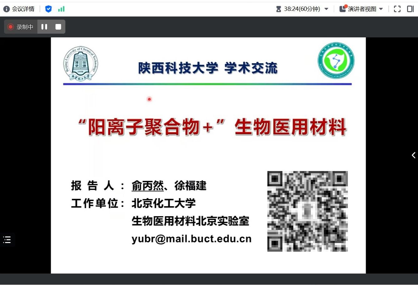 近日,應(yīng)我校輕工科學與工程學院(柔性電子學院)、科技處邀請,北京化工大學俞丙然教授做客我?!扒把乜茖W報告”,并作了題為《“陽離子聚合物+”生物醫(yī)用材料》的學術(shù)報告。報告會由輕工學院生物質(zhì)材料與能源系主任徐群娜教授主持,學院相關(guān)領(lǐng)域師生參與了此次交流。