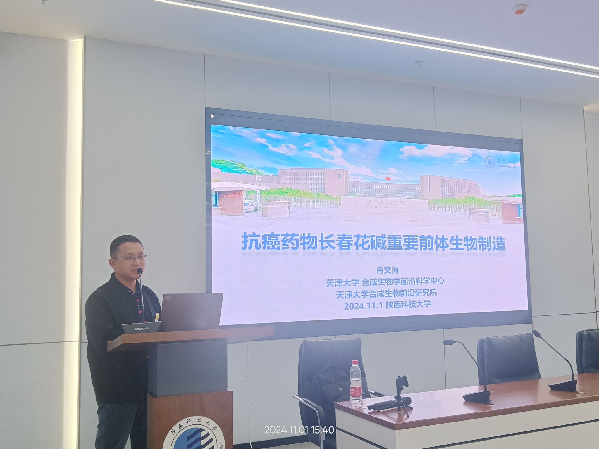 今日,應(yīng)食品科學(xué)與工程學(xué)院(生物與醫(yī)藥學(xué)院)邀請,天津大學(xué)肖文海教授作了題為“抗癌藥物長春花堿重要前體生物制造”的學(xué)術(shù)報(bào)告。食品學(xué)院部分教師和研究生代表參加本次報(bào)告會(huì),報(bào)告會(huì)由食品學(xué)院副院長劉寧主持。