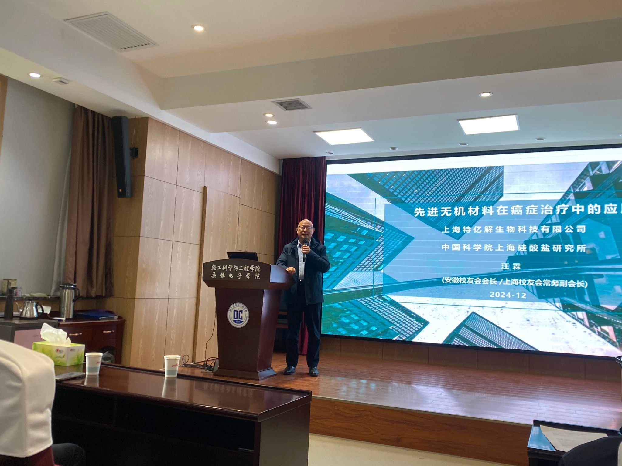 12月2日,應輕工科學與工程學院(柔性電子學院)和研究生院邀請,上海/蘇州特億解生物科技有限公司董事長汪霖做客我校“未央導師論壇”,作了題為“先進無機材料在癌癥治療中的應用”的報告。報告會由輕工學院馬建中教授主持,學院相關專業(yè)教師和研究生參加了此次報告會。