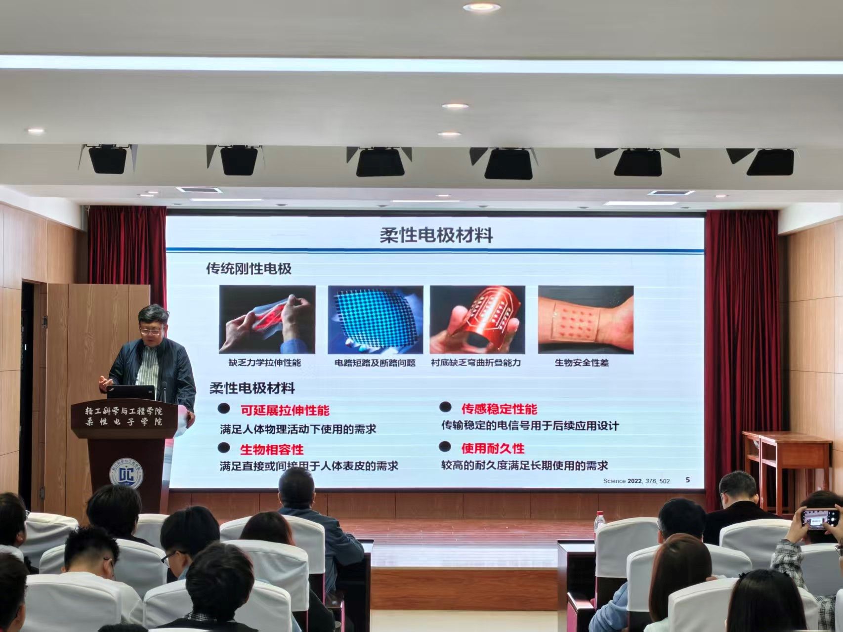 精彩的報(bào)告引起師生們的熱烈討論和踴躍提問,李鵬教授也熱情地回應(yīng)了相關(guān)疑問,并就柔性材料設(shè)計(jì)、器件穩(wěn)定性等問題與參會(huì)師生進(jìn)行了深入的討論和交流。會(huì)后,與會(huì)老師和同學(xué)們均表示受益匪淺。